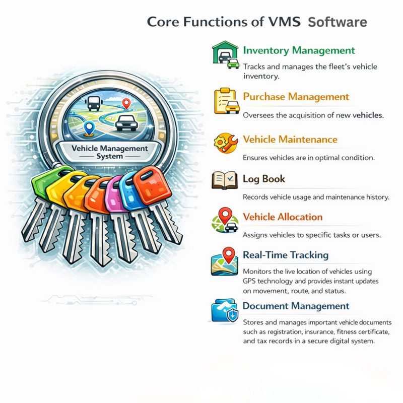 A Vehicle Management System (VMS) is a smart software platform that helps monitor, track, and manage vehicles efficiently from a centralized system.